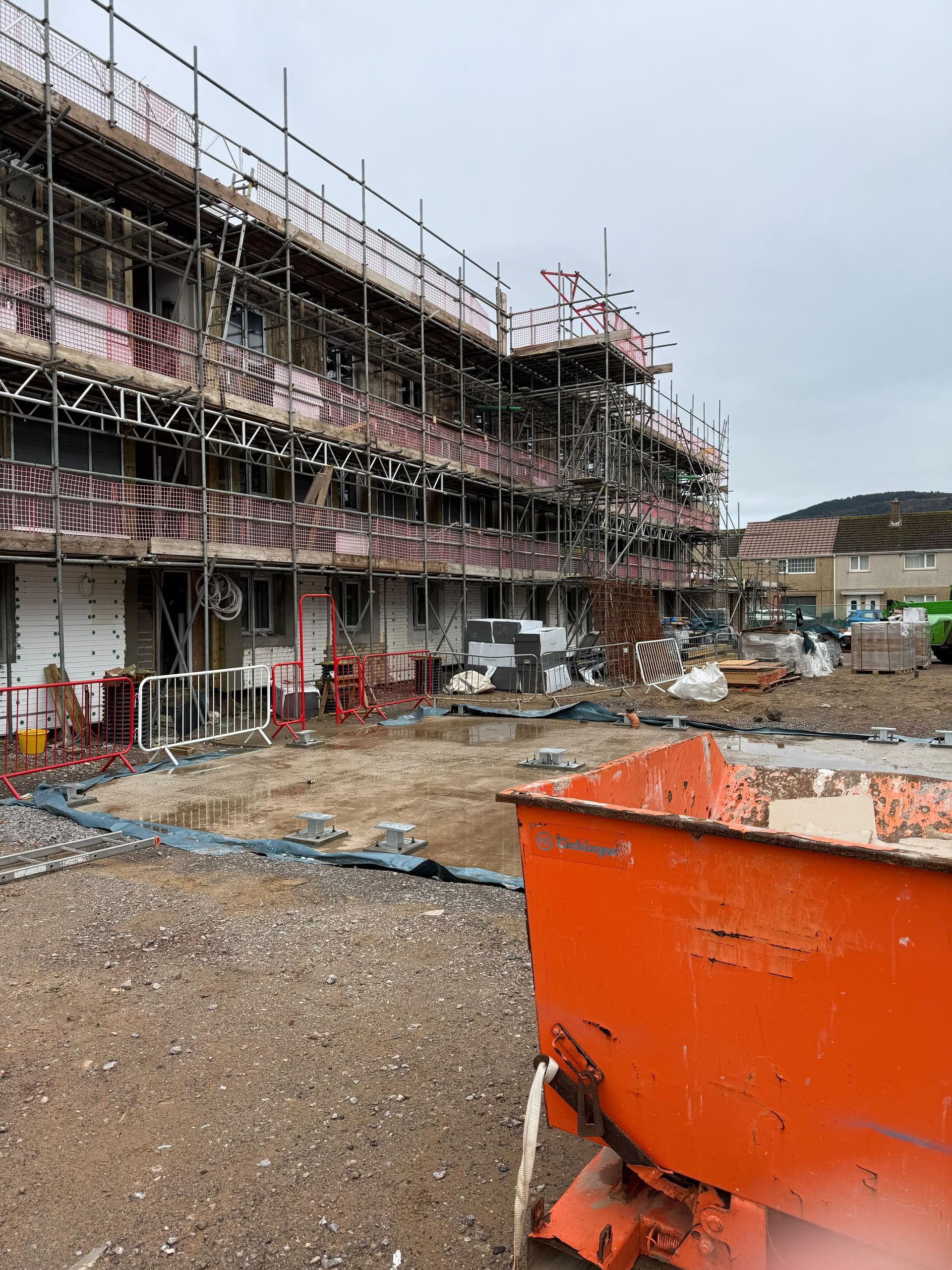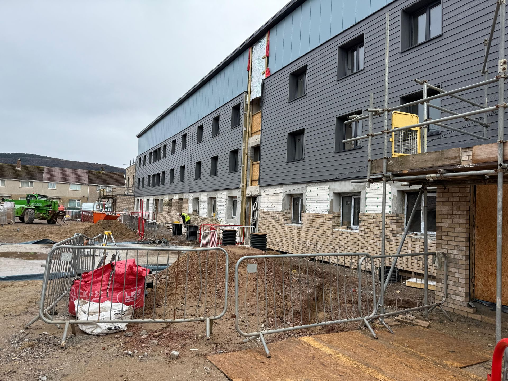 A project involving the installation of brick slip cladding on a block of flats in Port Talbot, enhancing the building's aesthetic and durability.
